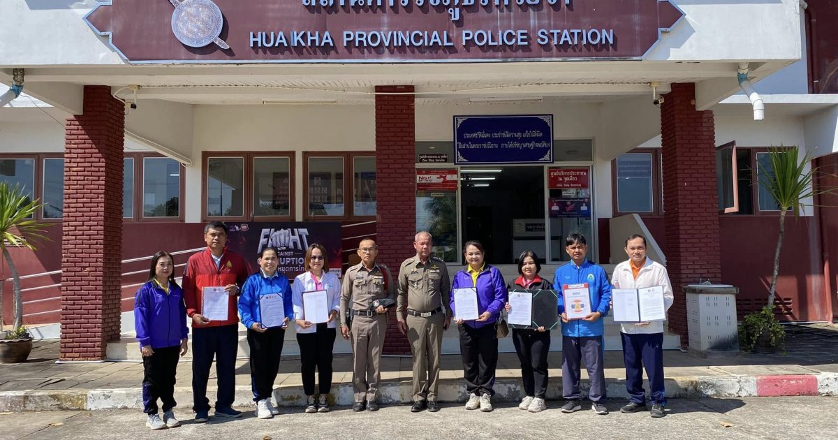 บันทึก MOU กับสถานศึกษา 20 ธันวาคม 2567 โดย admin / ข่าวประชาสัมพันธ์,ข่าวภารกิจผู้บังคับบัญชา,ผลการปฏิบัติงานประจำเดือน,ธันวาคม (อก.) 19ธ.ค.67เวลา 11.30น. พ.ต.อ.ทองปอน ปานทอง ผกก.สภ.ห้วยข่า พร้อมด้วย คณะผู้บริหารสถานศึกษากลุ่มเครือข่ายสถานศึกษาห้วยข่า อ.บุณฑริก จว.อุบลราชธานี ได้ทำบันทึกข้อตกลงความร่วมมือ(MOU) การป้องกันและการแก้ไขปัญหายาเสพติดในโครงการสถานศึกษาสีขาว ปลอดยาเสพติดและอบายมุข ระหว่าง สถานศึกษา กับ สถานีตำรวจภูธรห้วยข่า Facebook iconFacebookTwitter iconTwitterLINE iconLine