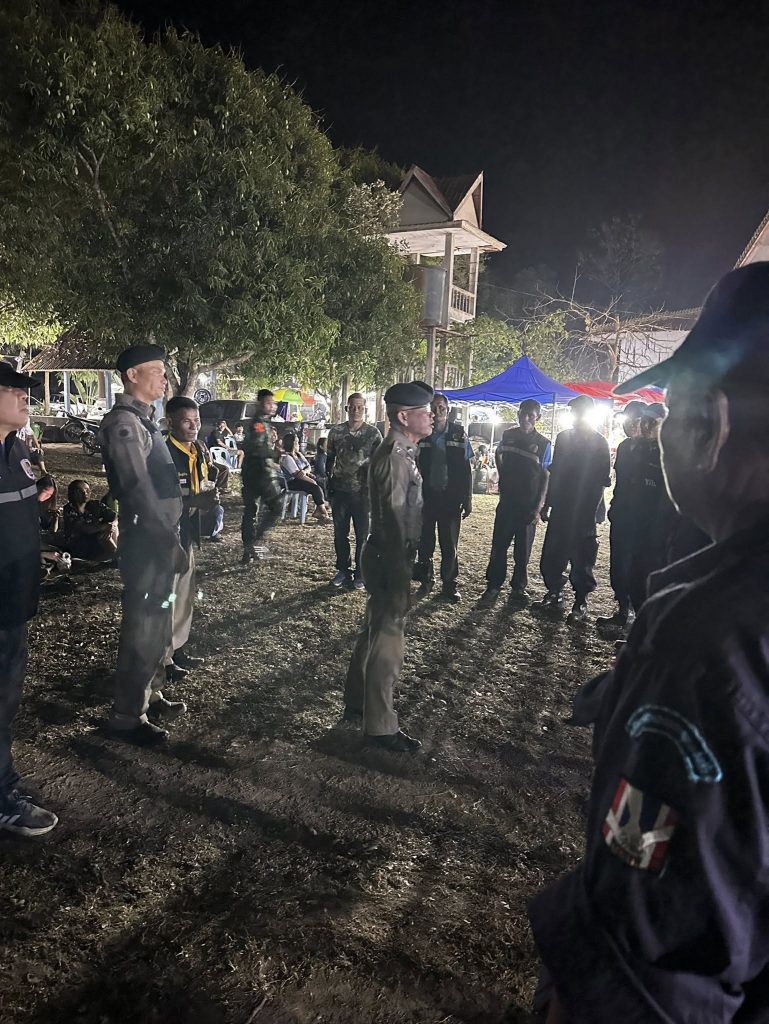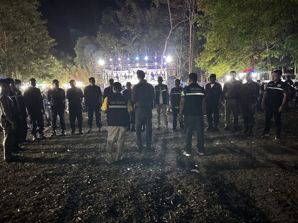รักษาความสงบ 26 มีนาคม 2568 โดย admin / ข่าวประชาสัมพันธ์,ข่าวกิจกรรม,ข่าวประชาสัมพันธ์,ผลการปฏิบัติงานประจำเดือน,มีนาคม (ป.) 25 มี.ค. 2568 เวลา 21.00 น.พ.ต.ท.ไพฑูรย์ บุดดาเพศ สวป .สภ.ห้วยข่าร.ต.ท.ธนยศ วังคะฮาดรอง สว.(ป) สภ.ห้วยข่า/ร้อยเวร 2-0พร้อมเจ้าหน้าที่ตำรวจสายตรวจเจ้าหน้าที่ฝ่ายปกครอง/ชรบ.ร่วมกันออกตรวจสถานที่ในการรักษาความสงบงานมหรสพหมอลำซิ่ง ณ วัดบ้านคำบาก ม.6 ต.ห้วยข่า อ.บุณฑริก จ.อุบลราชธานี Facebook iconFacebookTwitter iconTwitterLINE iconLine