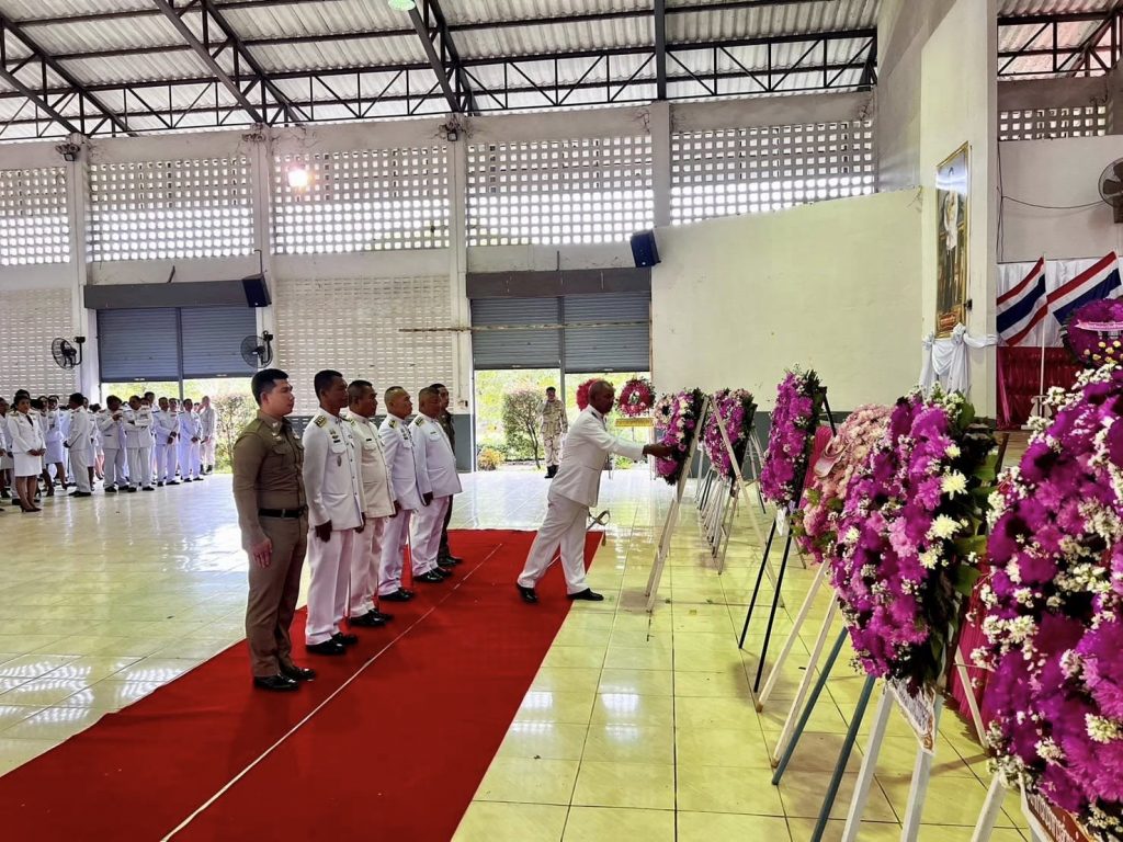 วันปิยะมหาราช 23 ต.ค.67 24 กุมภาพันธ์ 2568 โดย admin / ข่าวประชาสัมพันธ์,ข่าวกิจกรรม,ข่าวประชาสัมพันธ์,ผลการปฏิบัติงานประจำเดือน,ตุลาคม (อก.) 23 ต.ค. 67 เวลา 08.00 น.พ.ต.อ.ทองปอน ปานทอง ผกก.สภ.ห้วยข่า พ.ต.ท.อโนชา สรรศรี รอง ผกก.(สอบสวน)สภ.ห้วยข่า พร้อมด้วยข้าราชการตำรวจ สภ.ห้วยข่าร่วมพิธีวางพวงมาลา เพื่อเป็นการน้อมรำลึกถึงพระมหากรุณาธิคุณ พระบาทสมเด็จพระจุลจอมเกล้าเจ้าอยู่หัว ที่ทรงมีต่อปวงชนชาวไทยอย่างหาที่สุดมิได้ เนื่องในวันปิยมหาราช 23 ตุลาคม 2567 ณ หอประชุมอำเภอบุณทริก จังหวัดอุบลราชธานี Facebook iconFacebookTwitter iconTwitterLINE iconLine