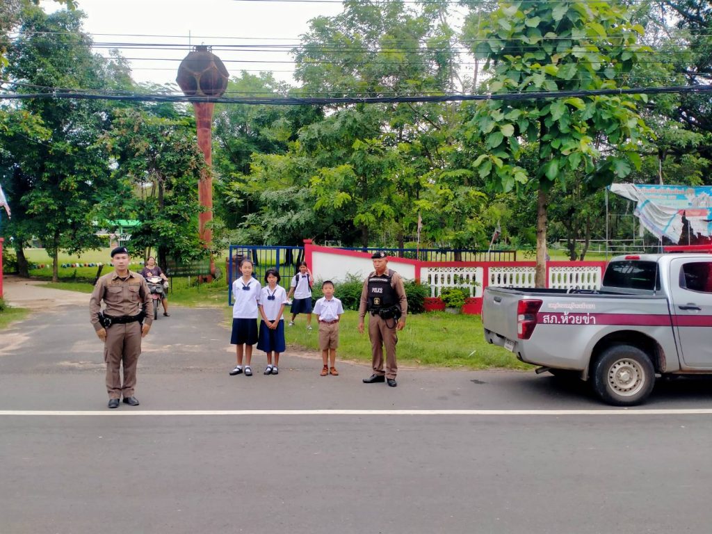 3 ก.ค.66 เวลา 07.00 น. ร.ต.ท.ภาณุพงษ์ มิกขุนทด รอง สว.(ป.)ฯ/ร้อยเวร 2-0 พร้อมด้วย ส.ต.ต.ธีรเดช แสนทวีสุข, ส.ต.ต.เสกศิริ วรรณสุทธะ จนท.สายตรวจ ร่วมกันปฏิบัติหน้าที่อำนวยความ สะดวกด้านการจราจรในเวลาเร่งด่วนให้กับนักเรียน,ผู้ปกครอง เเละคณะครู ร.ร.บ้านห้วยข่า บริเวณถนนหน้าโรงเรียน เพื่อให้การสัญจรของผู้ใช้รถใช้ถนนและนักเรียนเกิดความปลอดภัยเเละลดการเกิดอุบัติเหตุ เหตุการณ์ทั่วไปปกติ