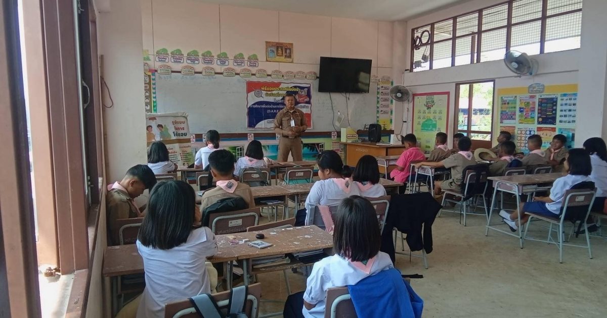 โครงการสร้างภูมิคุ้มกันและป้องกันยาเสพติด 25 กุมภาพันธ์ 2568 โดย admin / ผลการปฏิบัติงานประจำเดือน,กุมภาพันธ์ (ป.),ผลการปฏิบัติงานประจำเดือน,กุมภาพันธ์ (อก.) 20ก.พ. 68 เวลา 13.00-14.00 น.ร.ต.ท.ภาณุพงษ์ มิกขุนทด ครูdare14834 ไปทำการสอนตามโครงการการศึกษาเพื่อต่อต้านการใช้สารเสพติดและความรุนแรงในเด็กนักเรียน (D.a.r.e. Thailand) พร้อมนี้ได้บรรยายให้ความรู้ในการป้องกันการถูกล่วงละเมิดทางเพศออนไลน์ ที่โรงเรียนบ้านโนนค้อ ต.โนนค้อ อ.บุณฑริก จ.อุบลราชธานี Facebook iconFacebookTwitter iconTwitterLINE iconLine