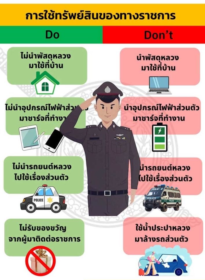 • ฝึกอบรม เสริมสร้างความรู้ ความเข้าใจ ให้เจ้าหน้าที่ตำรวจในการใช้ทรัพย์สินของทางราชการ