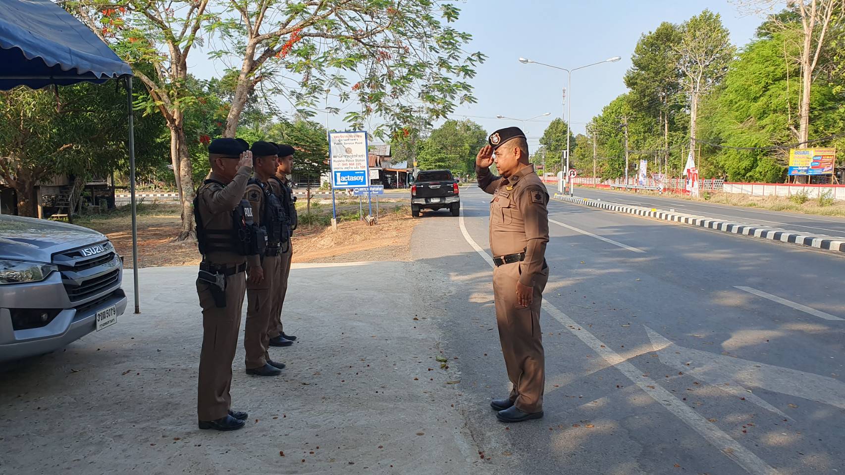 ปล่อยแถวสายตรวจ 2 พ.ค.66 เวลา 07.40 น.พ.ต.ท.วีรพล สีดาจิตร์ รอง ผกก.ป.สภ.ห้วยข่า อบรมปล่อยแถว